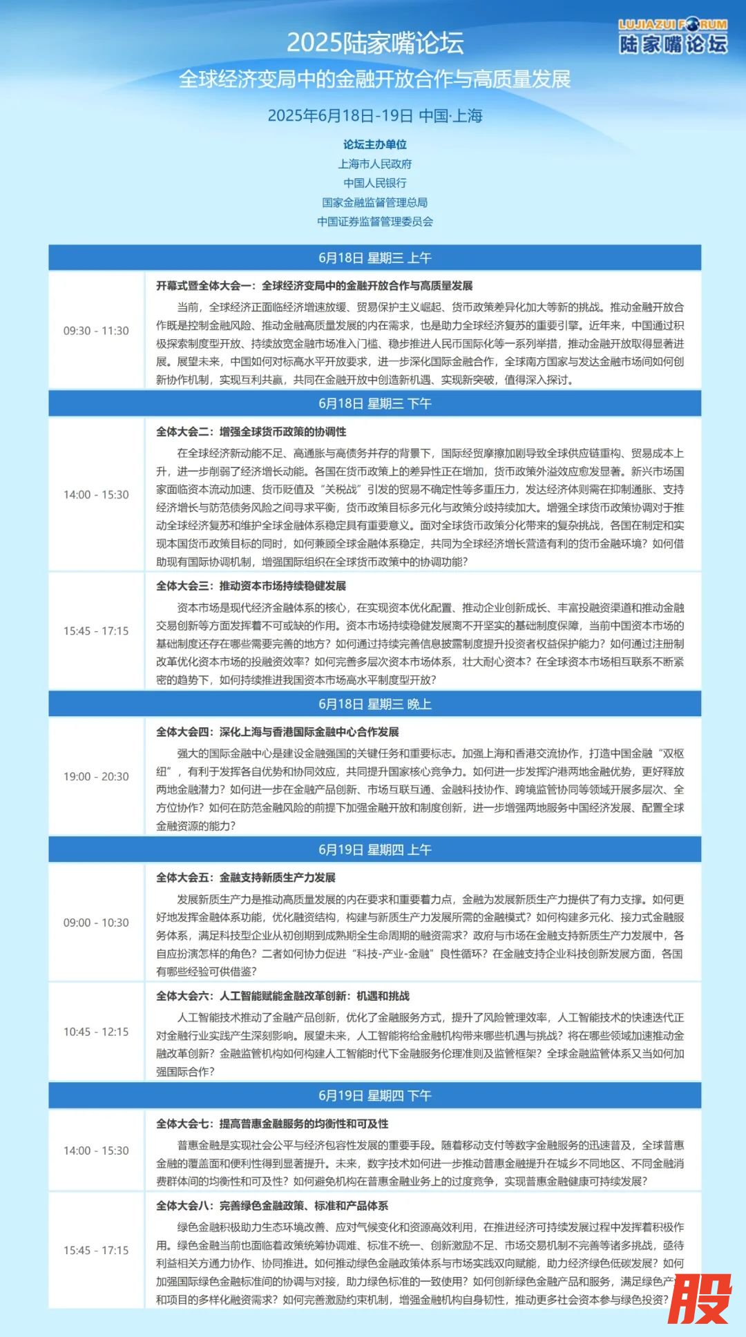据陆家嘴论坛网站消息,为期两天的2025陆家嘴论坛将于6月18日上午开幕。主题为“全球经济变局中的金融开放合作与高质量发展”。
