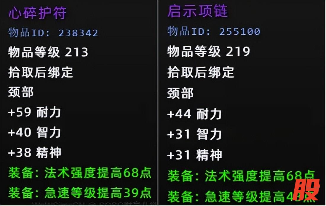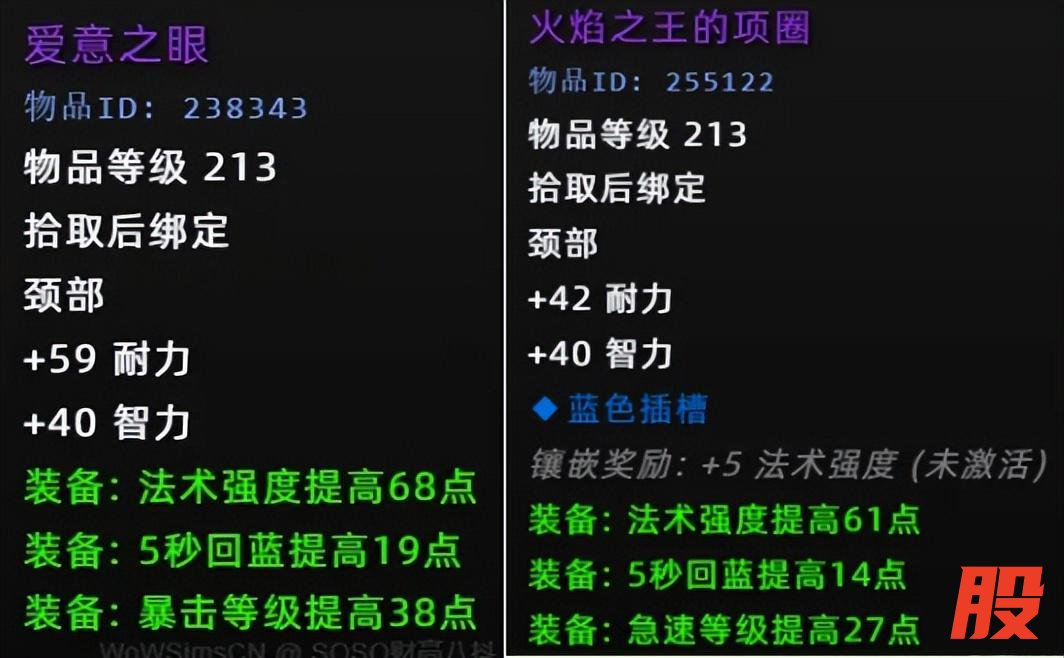 情人节项链对于破甲职业需求更高一些,比如猎人,如果你拥有4+4的情况下,应该是不缺命中,使用左边的话不会浪费一点属性。