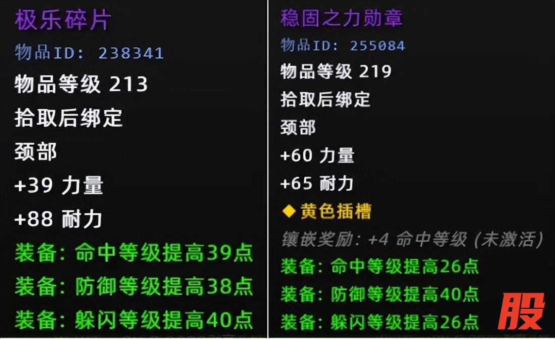 纵观魔兽史上的情节人活动,防御项链一般都比团本的好,就拿MC掉落的219稳固之力勋章做对比,虽然少一个孔,但其它属性不输219装等,最关键的是左边的耐力高出23点,性价比拉满。